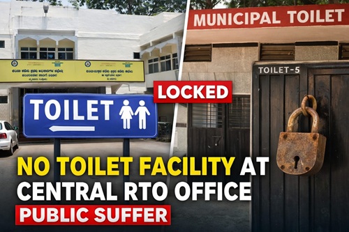 Hundreds of people visit the central RTO office in Mysuru daily, but there is no proper toilet facility available, causing severe inconvenience. People of all age groups, including the elderly and those with health issues, are struggling—especially during the summer.